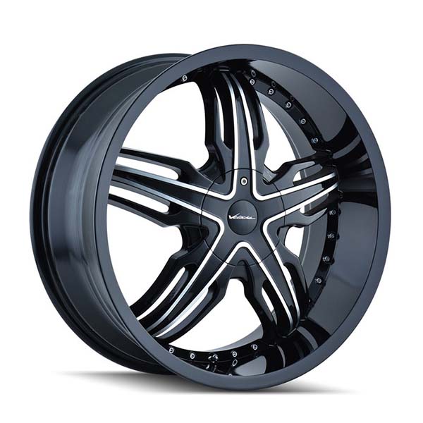 Veloche Solar black with machined face and lip wheel rim has 5 stylish finished spokes giving a stunning appearance on roads. Each wheel rim has 20 inches rim diameter, 8.5 inches rim width, 5×112 millimeters / 5×115 millimeters bolt pattern, 40 millimeters offset, manufacturer part number 585-2806B and 1-piece constructed wheel rim perfectly fits for your vehicle.