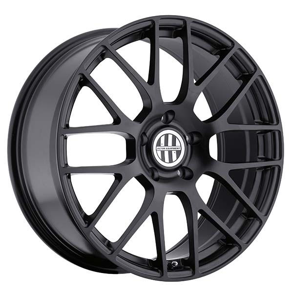 Innsbruck aftermarket Porsche wheels from Victor Equipment have a ski pole basket design comprised of a latticework of eight paired spokes radiating from a center hub. This wheel is available in serious Matte Black finish as well as striking Silver with a mirror-cut face.